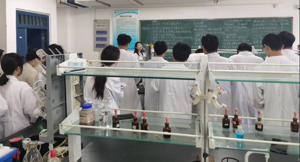 2024年4月24日下午第5节,化学化工学院无机教研室贾桐桐老师公开展示了《无机化学实验(二)课程实验五——p区非金属元素(一)卤素、氧、硫》的情况,教研室常新红、刘新芳、王玉芳、李晓玲、傅红如、李荣芳等老师参与听评课。