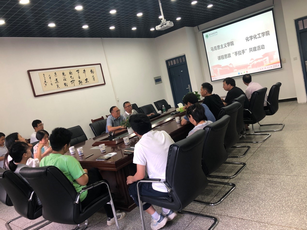 为深入贯彻全国高校思想政治工作会议、全国教育大会精神,全面落实教育部《高等学校课程思政建设指导纲要》(教高〔2020〕3号)、中共河南省委高校工委 河南省教育厅《关于推进本科高校课程思政建设的指导意见》(教高〔2020〕314号)等文件精神,按照《洛阳师范学院课程思政“手拉手”共建行动实施方案》(校教〔2023〕13号)要求,6月13日下午,应用化学系联合化学工程与工艺系邀请马克思主义学院牛子宏副院长开展课程思政“手拉手”共建活动,座谈会在化学化工学院214室举行,刘贵龙副院长、应化系和化工系全体教师参加,会议由刘贵龙主持。