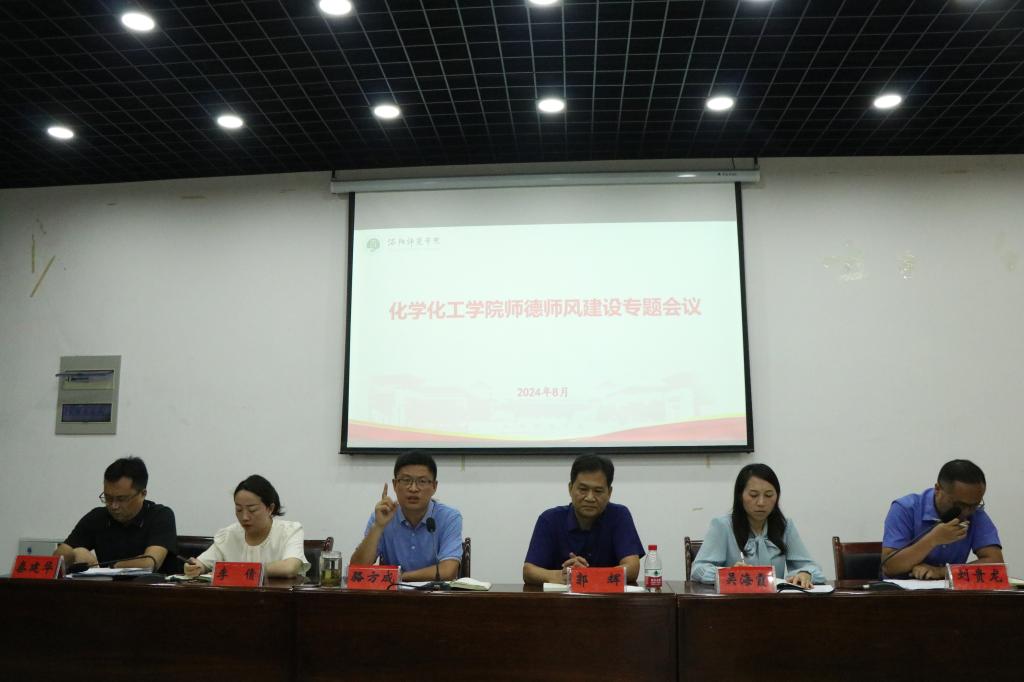 为切实加强新形势下师德师风建设工作,有效防范化解师德失范风险隐患,营造尊师重教良好氛围,8月30日下午,化学化工学院于化学楼215会议室开展师德师风专题教育会议,化学化工学院全体教职工参加会议。