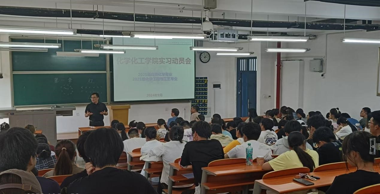 为推进2024年秋季学期学生专业实习工作,9月5日上午,化学化工学院于G4-302教室召开2021级专业实习动员会。学院副院长秦建华、化学工程与工艺专业实习带队教师郭金波、应用化学专业实习带队教师付维军及实习工作管理人员汤潜潜出席此次会议,2021级应用化学专业和化学工程与工艺专业全体学生参加此次会议。