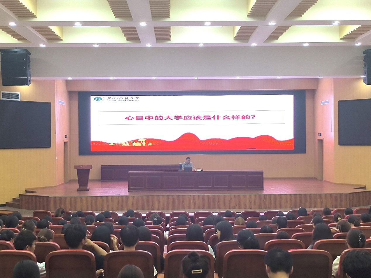 首先,骆书记带领新生重温了张伯苓先生的“爱国三问”,向新生提出“爱校三问”,希望同学们志存高远、爱校荣校、珍惜时光。接着,骆书记围绕“坚定理想信念、肩负时代重任” “厚植爱国情怀、立志奉献国家” “培养奋斗精神、树立高远志向” “增强综合素质、培养创新思维”等方面,通过一系列生动的案例,深入浅出地阐释了新时代大学生应有的使命感和责任感。他强调,新生要明确人生目标,把个人发展与国家利益结合起来,勇敢地肩负起时代赋予的责任。此外,骆书记也为新生在提升综合素养、处理人际关系、确定职业发展等方面给出了具体可行的建议。最后,骆书记对全体新生寄予嘱托,希望大家立大志、明大德、成大才、担大任,努力成为堪当民族复兴重任的时代新人。