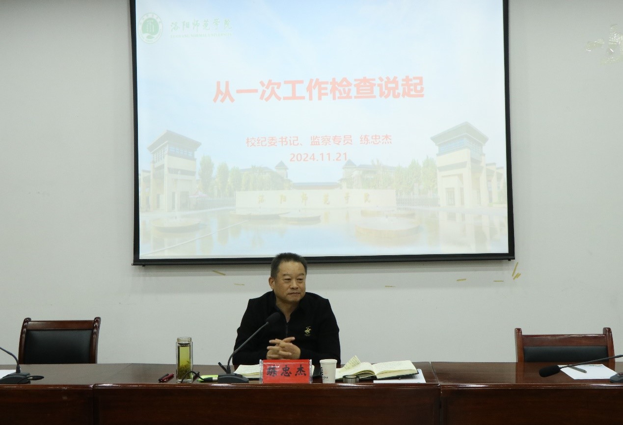 11月21日下午,校纪委书记、监察专员练忠杰以《从一次工作检查说起》为题到我院开展专题讲座,讲座由学院党委书记骆方成主持,学院领导班子成员及全体教职工参加了本次讲座。