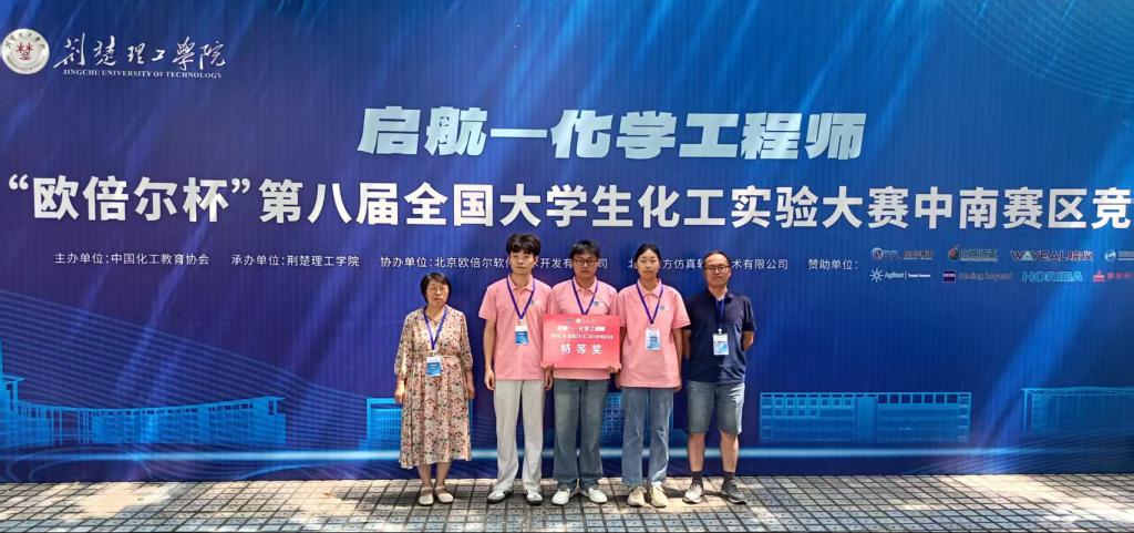 近日,第八届全国大学生化工实验大赛中南赛区选拔赛在荆楚理工学院圆满落幕。由我院2022级化学工程与工艺专业张梦飞、范银超、刘艺娜三位同学组成的参赛团队,在袁巍巍、唐四叶等教师的悉心指导下,从中南六省90所高校的158支参赛队伍中脱颖而出,勇夺赛区特等奖,成功进入全国总决赛。