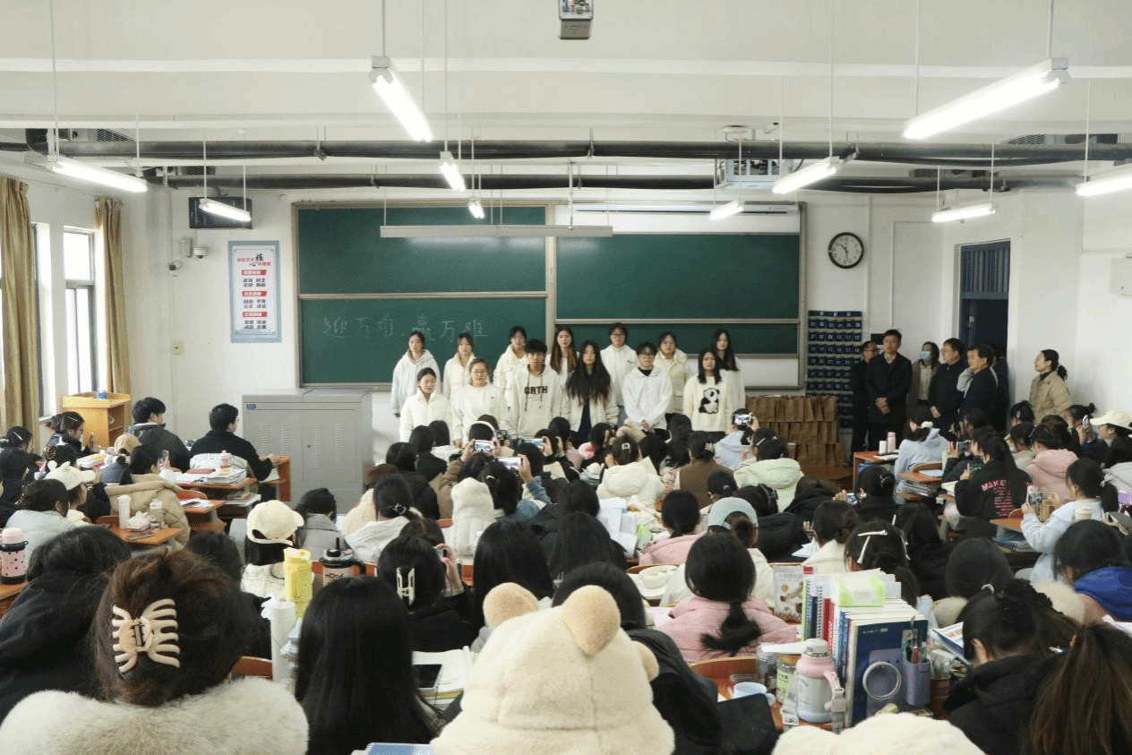 随后,学生代表为考研学长学姐们献上了一曲《一路生花》,祝愿大家不负韶华,不负努力,成功上岸,一路生花。老师们一同为考研学子递上精心筹备的“考研加油包”。既有各种水果食品,进行能量补给,更有写满师长亲笔鼓励话语的明信片,传递真挚关怀。一件件饱含心意的礼品,让备考学子们深切感受到学院的暖心关怀。