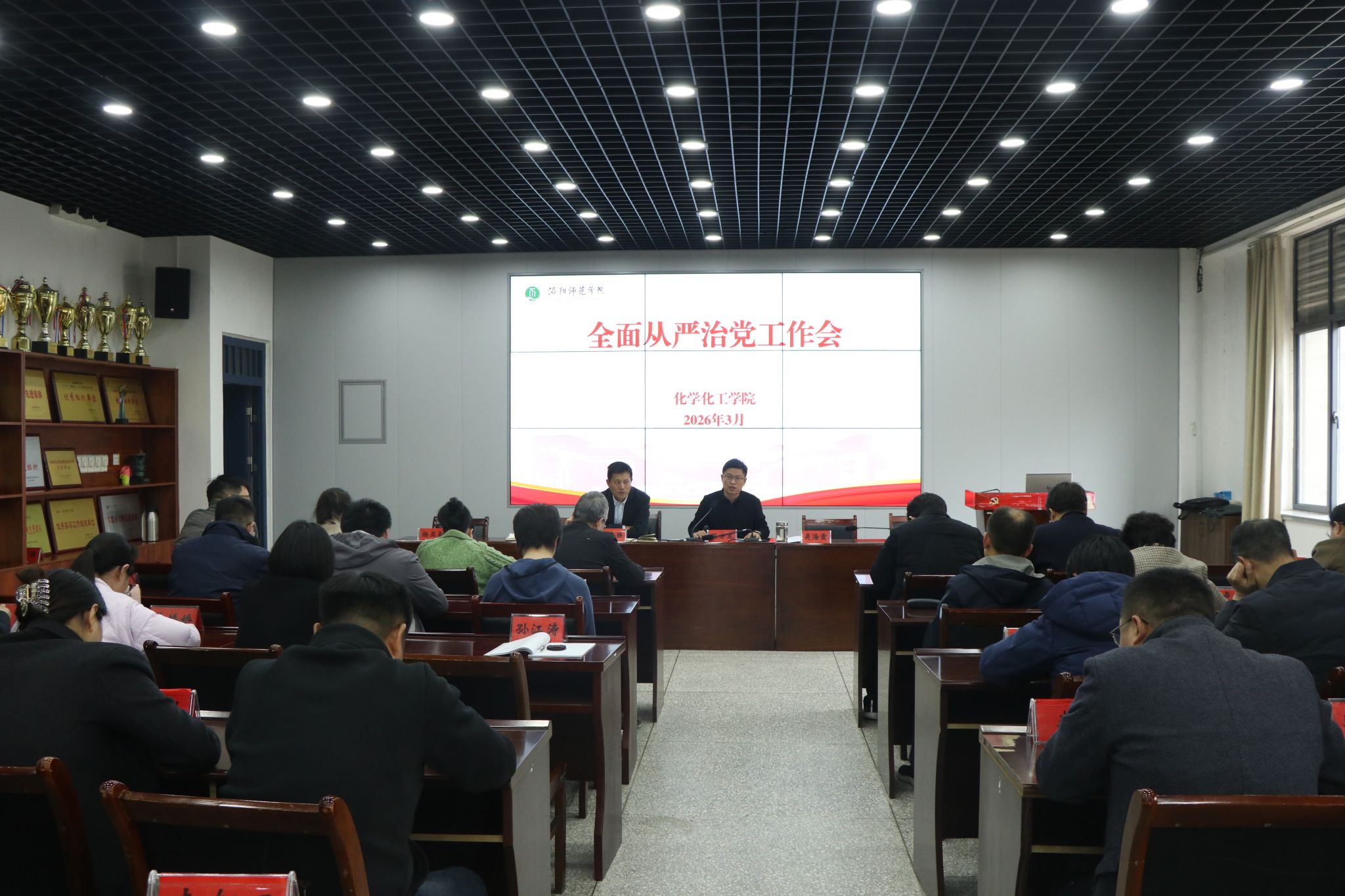 3月26日,我院于化学楼215会议室召开全面从严治党工作会议,深入学习贯彻学校全面从严治党工作会议精神,结合学院实际,对学院2026年全面从严治党工作进行安排部署。学院领导班子及全体教职工参会,会议由学院党委书记骆方成主持。