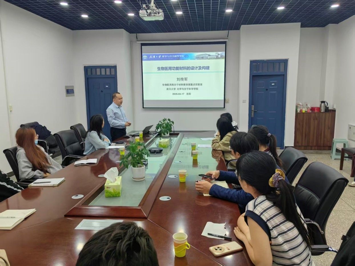 4月17日上午,应洛阳师范学院化学化工学院邀请,武汉大学化学与分子科学学院刘传军教授在我院214会议室作了题为“生物医用功能材料的设计及构建”的学术报告。报告会由化学化工学院副院长吴海霞主持,学院青年教师及相关专业联培研究生参会。