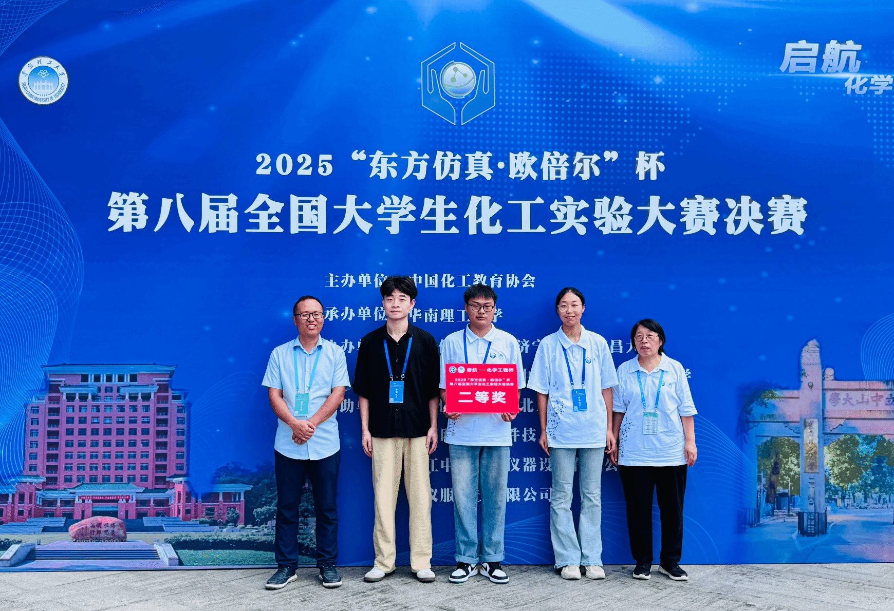 近日,由中国化工教育协会主办、华南理工大学承办的第八届全国大学生化工实验大赛圆满落幕。由我院2022级化学工程与工艺专业张梦飞、范银超、刘艺娜三位同学组成的参赛团队,凭借扎实的理论功底、精湛的实验技能、出色的仿真操作能力与默契的团队协作,从全国84支总决赛队伍中脱颖而出,最终以全国第46名的优异成绩荣获全国二等奖。