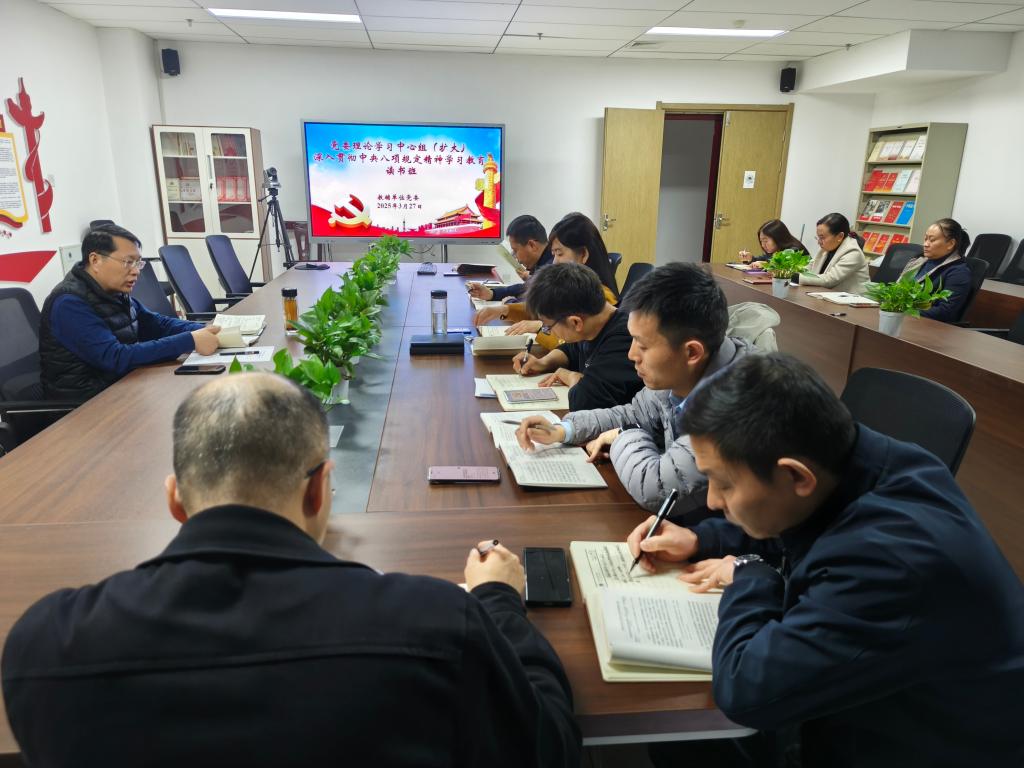 3月27日至31日,教辅单位党委以党委理论学习中心组(扩大)会议的形式,采取集体学习、个人自学和交流研讨相结合的方式,举办深入贯彻中央八项规定精神学习教育读书班。教辅单位党委委员、各部门中层领导干部参加读书班。