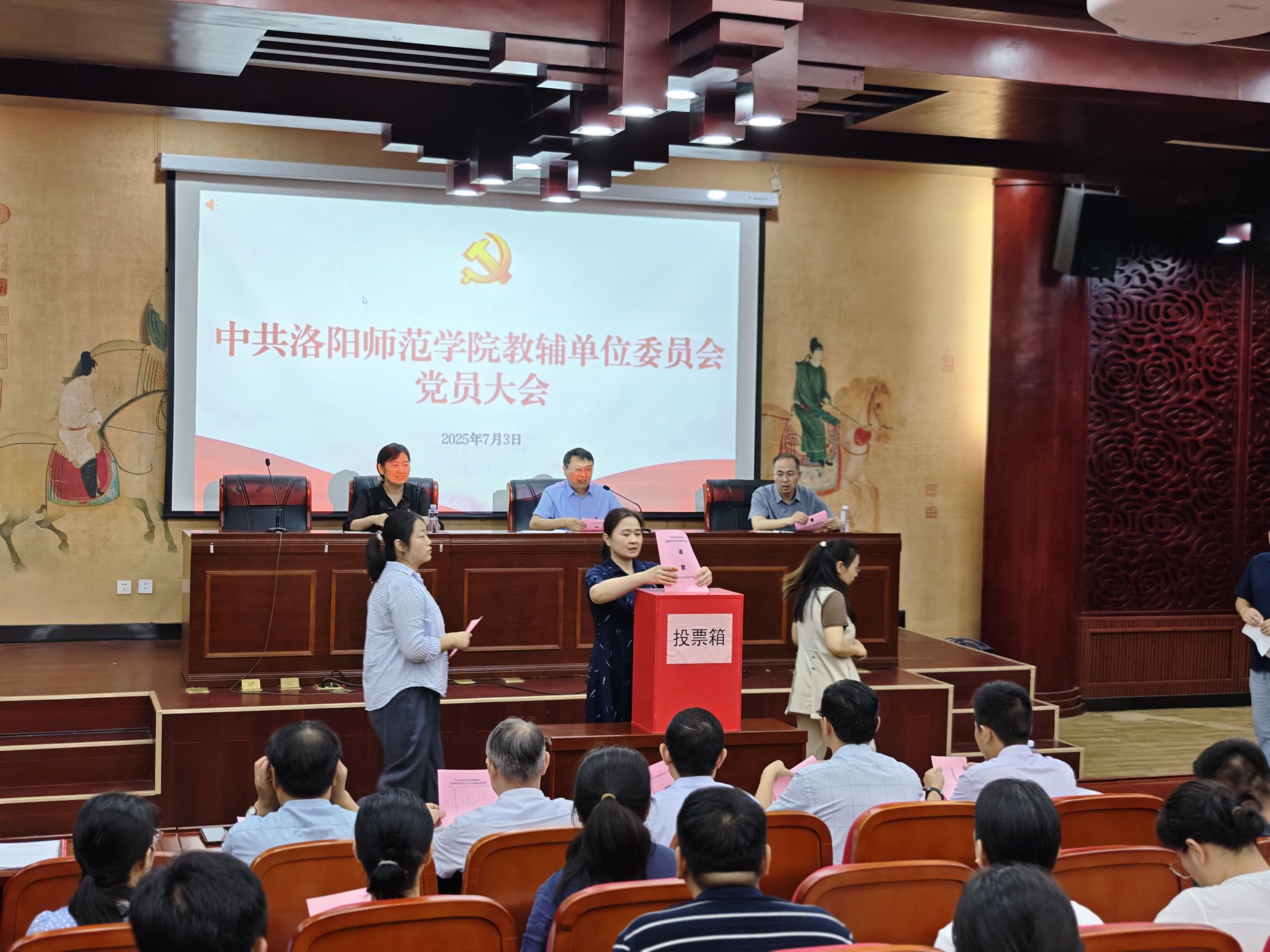 7月3日上午,中共洛阳师范学院教辅单位委员会党员大会在G5-102报告厅庄严举行,教辅单位全体党员出席会议。
