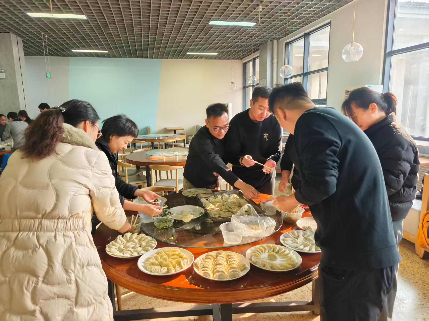活动现场气氛热烈,欢声笑语不断。教职工们纷纷挽袖上手,分工协作,默契配合。在忙碌而愉悦的互动中,大家交流着工作与生活,切磋着包饺子的技艺,形态各异的饺子很快摆满了餐盘。热气腾腾的饺子出锅后,大家共同品尝着自己的劳动成果,感受着集体大家庭的温暖与节日的浓厚情谊。