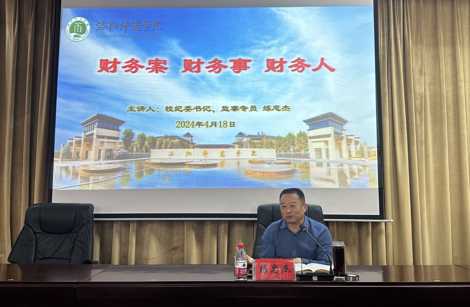 为加强财务队伍建设,提高财务人员廉洁自律意识和防范风险能力,切实发挥财务工作在监督体系中的重要作用,4月18日下午,校纪委书记、监察专员练忠杰在成均学堂为财务处上廉政党课,财务处全体人员参加。