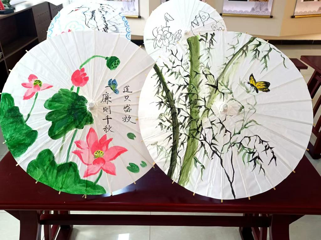 本次活动巧妙融合了非遗剪纸、书法、绘画、油纸伞制作等技艺,营造了风清气正的节日氛围。活动现场,同学们妙手生花,一张张红纸在他们的巧手下化作一幅幅寓意深刻的清廉图案,展现着“莲”之高洁;绘画区域,则是古韵悠长,跃然纸上的梅兰竹菊展现当代大学生对廉洁之风的传承;油纸伞下,同学们挥毫泼墨,绘制清廉之花,五彩斑斓的伞面深刻呼应主题;书法爱好者则以笔为剑,书写“粉骨碎身浑不怕,要留清白在人间”等廉政格言,笔墨间尽显清廉之气。