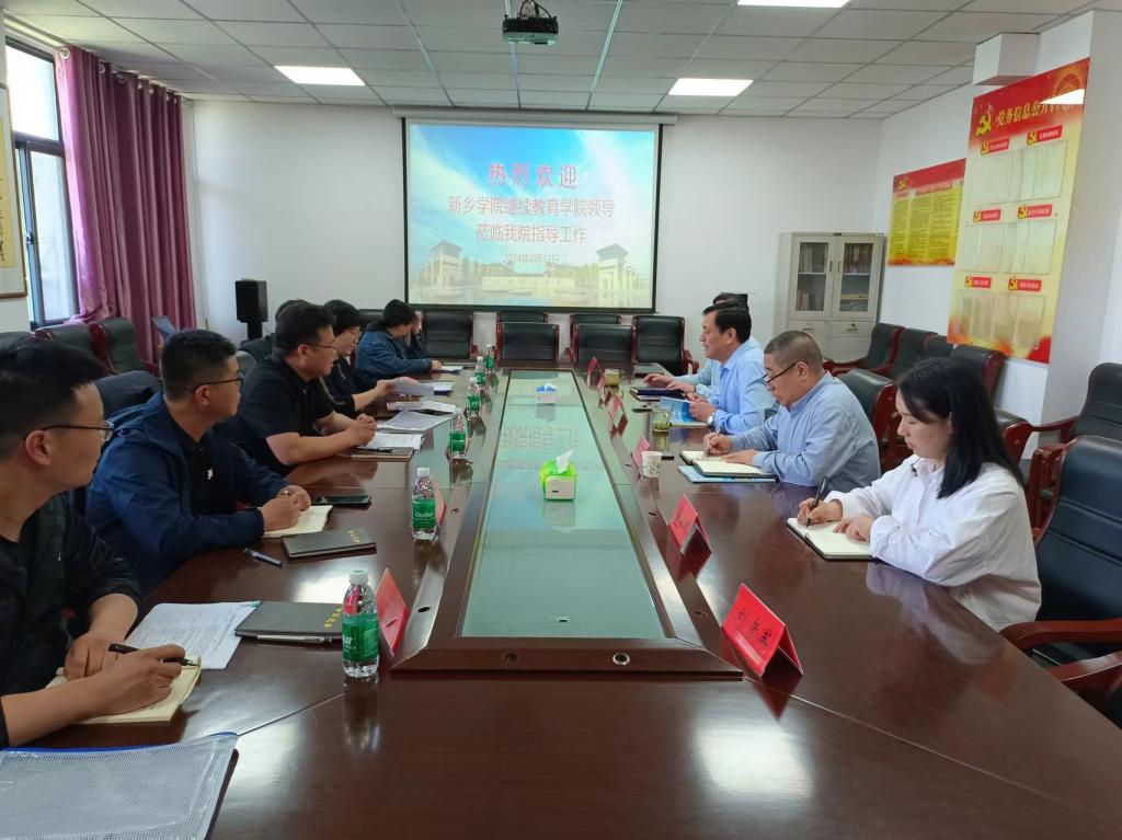 4月12日下午,新乡学院继续教育学院党支部书记崔红志、副院长畅丽萍及相关科室人员来我校考察交流,继续教育学院院长冯虎成、党总支书记何健、副院长翟丹和相关科室人员参加了座谈会。