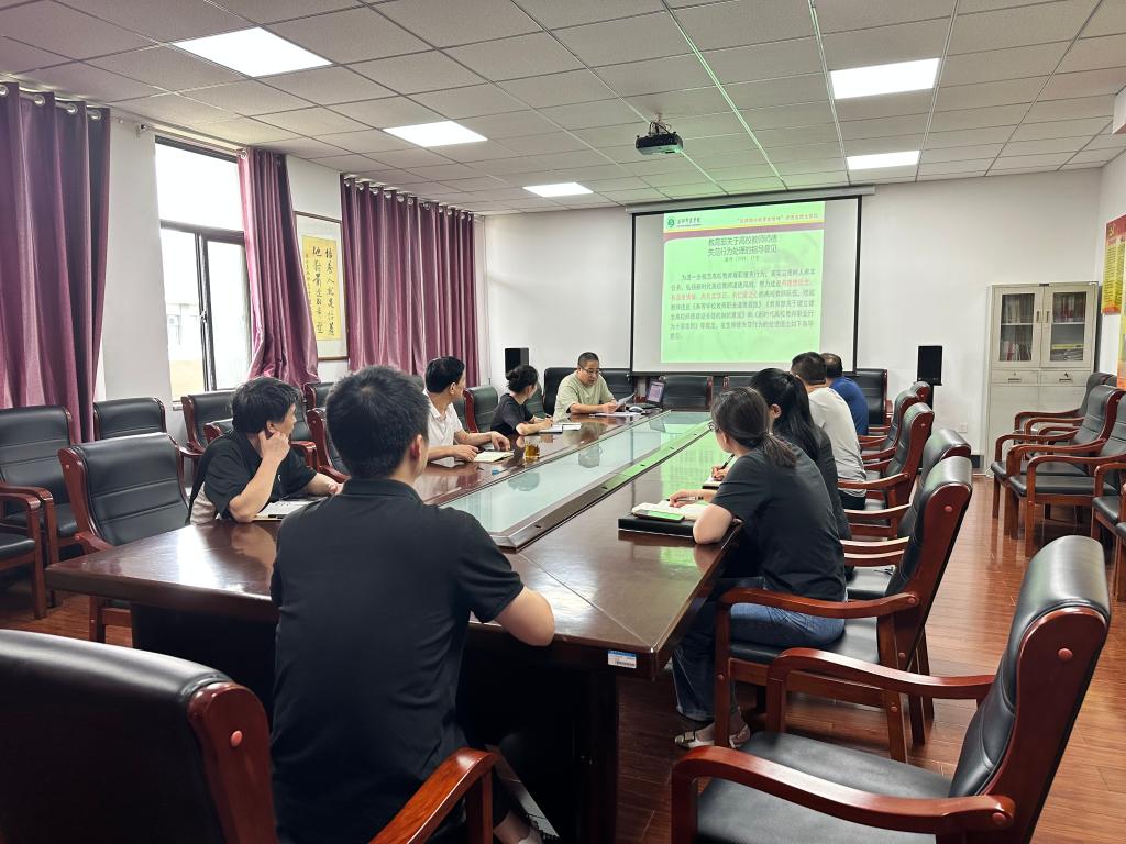 党总支书记何健领学了《教育部关于高校教师师德失范行为处理的指导意见》,他指出教师是立校之本,师德是教育之魂,培养教师具有理想信念、有道德情操、有扎实学识以及有仁爱之心,深刻认识到师德师风建设的重要性,自觉践行教育家精神。