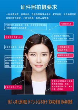(四)采集时一定真实表达学生本人相貌,请勿画浓妆和美颜,尽量使用手机自带相机拍摄或到照相馆照相后在线提交,禁止对图像整体或局部进行镜像、旋转等变换操作,不得对人像特征进行修饰处理,不得添加边框、文字、图案等其他内容。图像信息须正面免冠照,因背景是蓝色,所以尽量避免蓝色系服装,具体要求见下图。