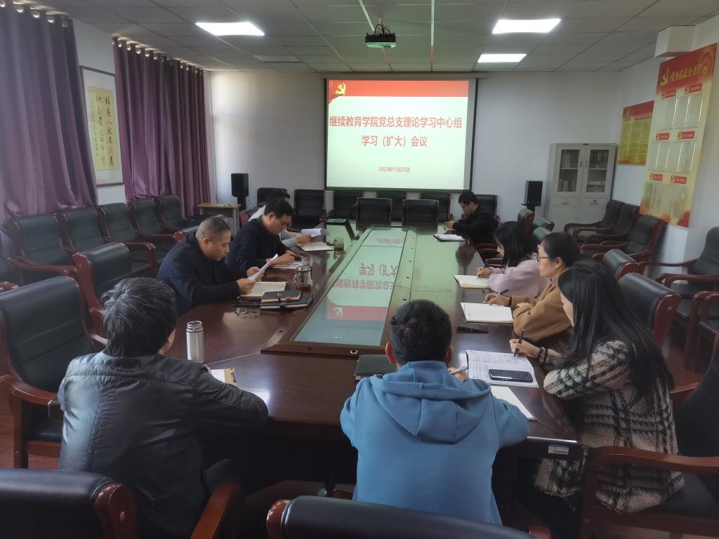 11月23日下午,继续教育学院党总支理论学习中心组在A6-429会议室举行学习(扩大)会,集中学习研讨新时代“枫桥经验”。学院中心组全体成员和全体教工党员参加,党总支书记何健主持。