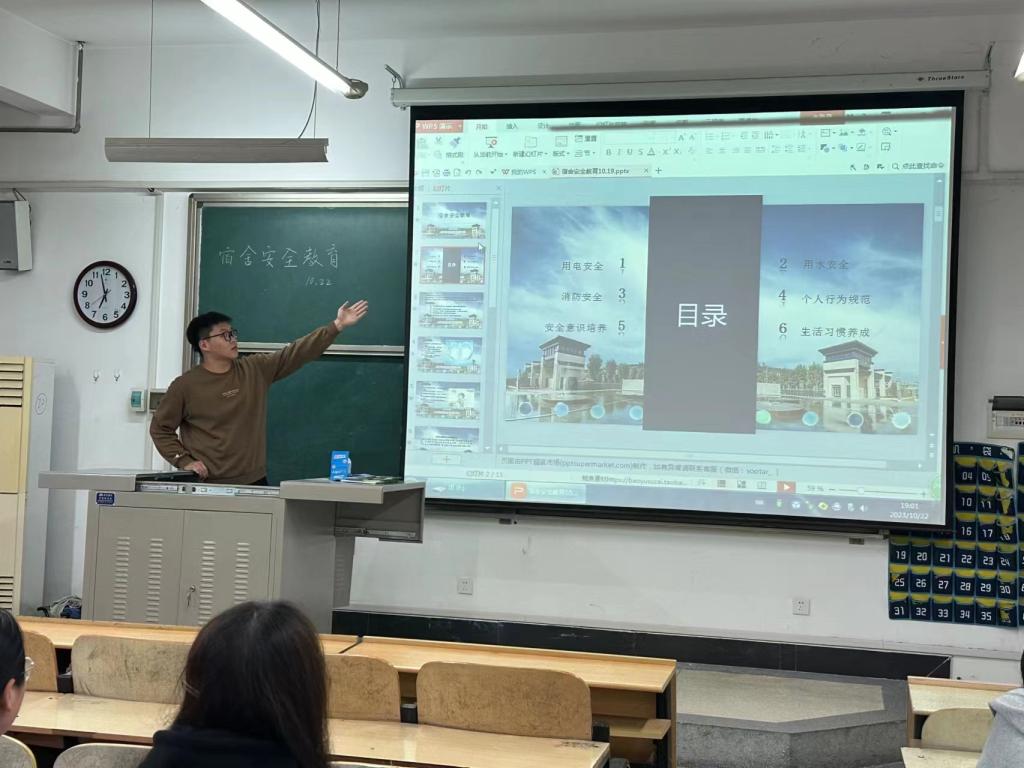 班会通过几起宿舍违规用电引发火灾的案例,向同学们展示了违规用电带来的严重后果,随后两个班长为同学们普及宿舍安全用电知识,并向同学们介绍安全用电的方式和注意事项,加强同学们对身边未注意到的安全隐患的重视,并及时消除隐患。最后,班长宣读了洛阳师范学院违章电器清单,督促同学们自查纠正,保障寝室用电安全。