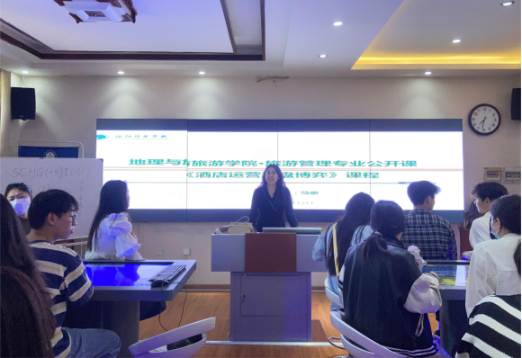 4月12日第3节,马荥老师采用小组博弈赛的形式,讲授了《酒店运营博弈沙盘》课程。这是一门酒店管理专业的综合实践课程。讲授过程循序渐进,教学内容由浅入深,教学互动自然流畅,通过小组赛充分发挥了学生的主体性作用,通过复盘交流使学生进一步掌握了酒店的运作机制、运营理念,学会了从管理者的高度去思考和解决问题,增进了学生对酒店管理专业的认同感。