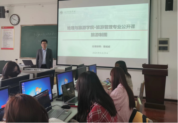 4月23日第3节,曹威威老师采用项目式教学形式,讲授了《旅游制图》课程。这是一门旅游管理专业的综合实践课。曹老师从花会实习中的景区导览图引入,从图形要素解析到底图选取,从图层设置到图幅设计,教学内容充分结合实际应用,努力贴近真实工作场景,理论联系实际,把学生从枯燥的课堂,拉到一线的现场,让学生深刻理解,为什么学、学什么,怎么学,学了有什么用,怎么用,增强学生对知识的理解能力和实践应用能力,提高了学生课程学习获得感。