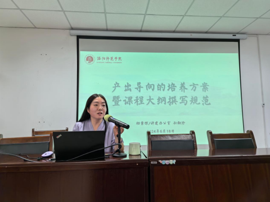 为动员学院上下统一思想、凝心聚力,顺利完成本科教育教学审核评估工作,6月18日下午,我院在A6-416会议室召开2024年本科审核评估专项培训会,邀请学校评估专家孙劭珍老师以“产出导向的培养方案暨课程大纲撰写规范”为主题开展辅导培训。学院党政领导班子及全体教职工参加。