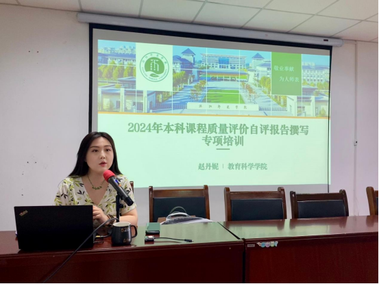 为贯彻落实教育部一流本科课程建设的有关要求以及省政府《关于加快一流专业建设提高人才培养质量的指导意见》精神,建立健全课程质量评价体系,全面提升课程建设、专业内涵建设水平,切实提高人才培养质量,6月27日上午,我院在A6-416会议室召开2024年本科课程质量评价自评报告撰写专项培训。学院党政领导班子及全体教职工参加。