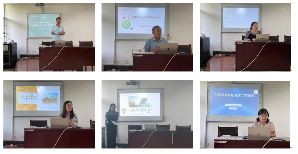 赵丹妮首先表达了对实习单位领导的热烈欢迎,详细阐述了本次会议的目的及流程,安排了实习工作,从教学观摩、教学实习、班级管理等五个方面对研究生实习进行了要求。随后与会的实习单位领导分别以“党建引领,铸魂育人,办让教师、学生、家长、领导满意的教育”“扎根拔节——做最好的乡村教育”“凝心聚力促养成,内涵发展创特色”“为儿童提供有准备的环境”“为了教育梦,我们努力奔跑”“守正创新、行稳致远”为题介绍了各自学校的工作特色及校园文化介绍。晋银峰做总结讲话,从“学生-教师”角色转换、教育情怀培植、学业与就业等三方面强调了实习过程对个人教育教学技能提高以及职业生涯发展的重要意义,希望2022级实习的研究生将所学的理论专业知识能更好运用于教育教学实际中,能更快地胜任工作岗位要求。
