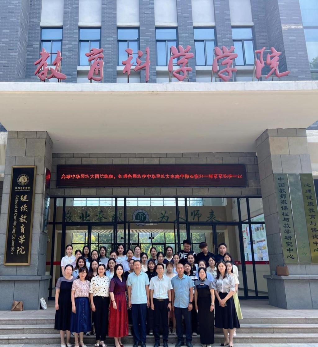 2023年9月4日我院在A6-416举行2022级小学教育研究生教育实习动员暨实习培训会,唐宫西路小学李铁成校长、红山实验小学张卫营校长、西工区教体局教科研主任戚丽英、西下池小学袁婷婷副校长、洛龙区第一实验小学安乐校区白郭瑞书记、洛龙区第一实验小学翠云校区鲁海丽副校长、广利街小学李辉副校长等研究生实习单位领导和我院院长晋银峰、副院长赵丹妮、研究生秘书郑满利以及全体2022级小学教育研究生参会。