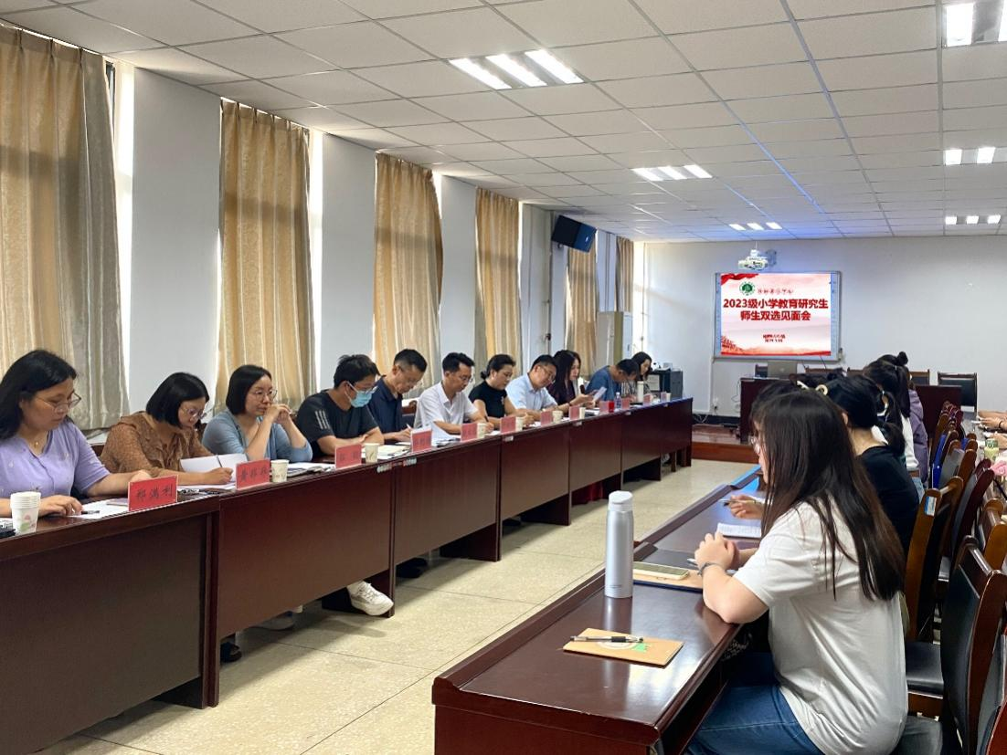赵丹妮在主持双选会时简要介绍了双选的基本原则和流程。36名研究生各自介绍了自己的身实践经历、学术兴趣、专业规划等;各位导师分别介绍了个人的基本情况、研究领域、研究成果等方面的基本情况。随后,研究生秘书在线发放师生双选意愿表,当场完成师生双选意愿表收集。晋银峰在总结指出,我院历来重视研究生的培养工作,研究生导师经过严格的遴选,具有深厚的学术实力和扎实的专业能力,希望通过此次会议加强师生双方沟通与了解,同时也勉励研究生珍惜学习机会,多与导师交流学习,在两年的学业生涯中不断锤炼本领,努力提升研究水平和教学技能,力争成为未来小学教育领域的卓越教师。