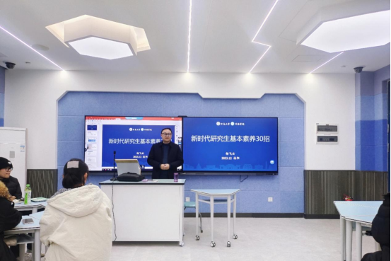 为了引导研究生全面发展,提高研究生综合素质水平,应我院邀请,12月21日下午,河南大学外国语学院党委副书记杨飞云副教授莅临我院,在A6-206教室做了题为《新时代研究生基本素养30招》的讲座。讲座由学院副院长赵丹妮主持,2022级、2023级全体研究生参加。