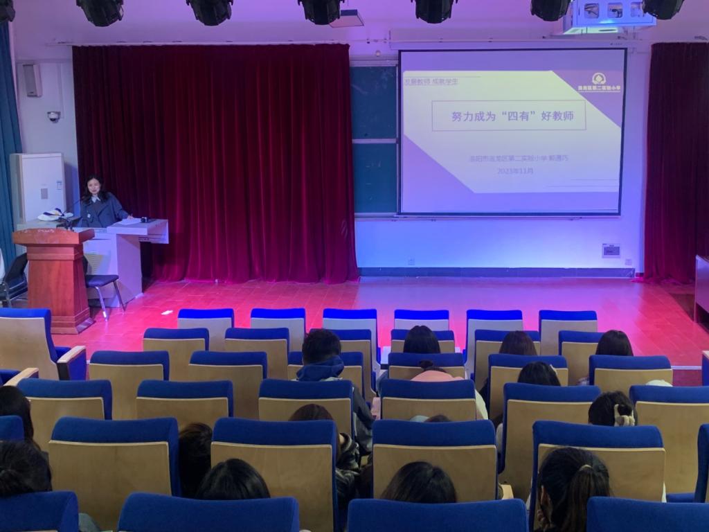 11月9日下午,为了帮助师范生更加明确未来发展方向,小学教育专业“名师进课堂”系列讲座于A6-116举行,洛阳市洛龙区第二实验小学校长郭遇巧应邀做了题为“努力成为‘四有’好教师”的讲座。