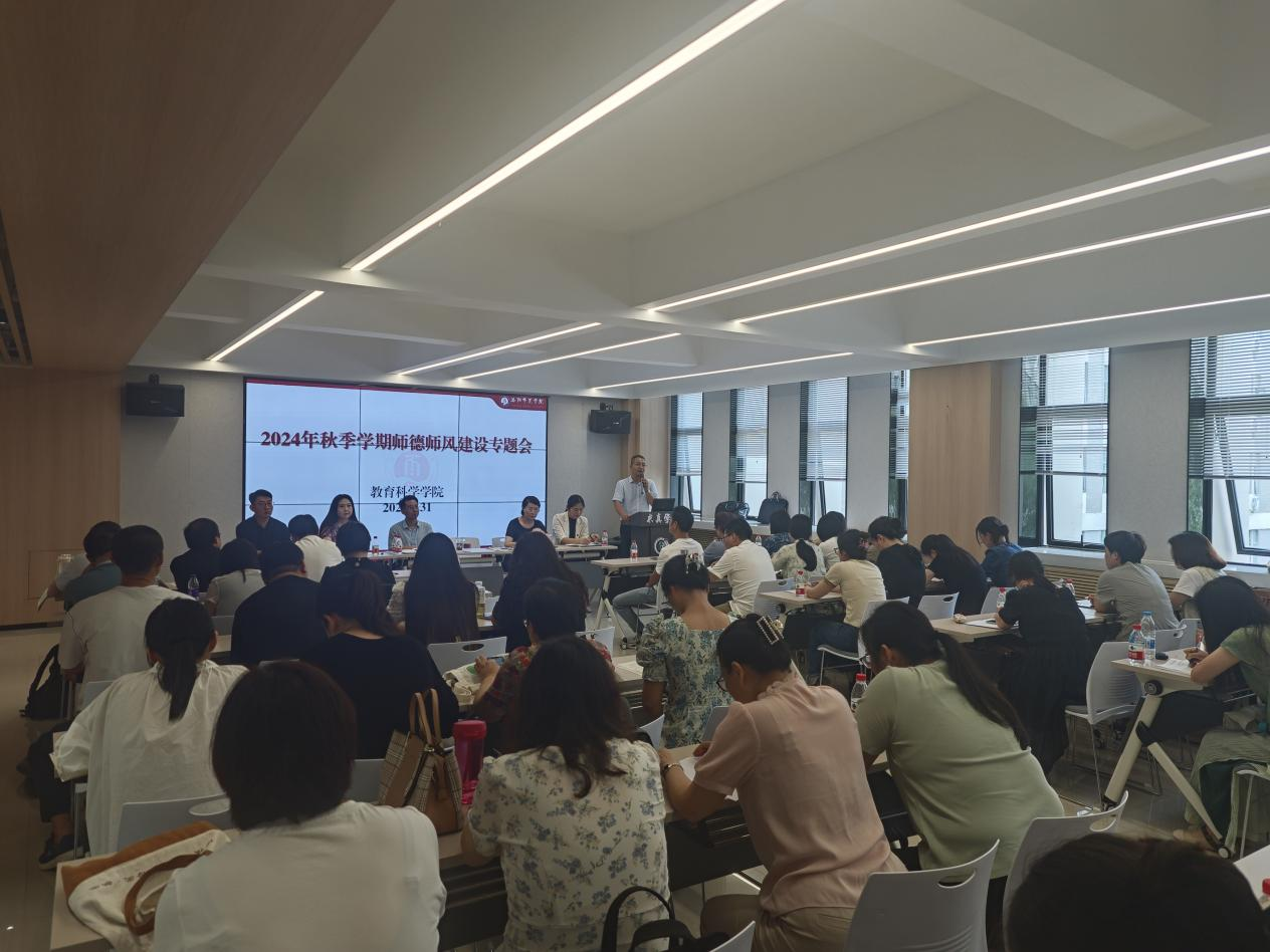 为切实加强新形势下师德师风建设工作,有效防范化解师德失范风险隐患,8月31日上午,学院党委书记陈磊在问礼书院二号社区求真学堂开展教职工理论学习暨师德师风宣讲教育活动。