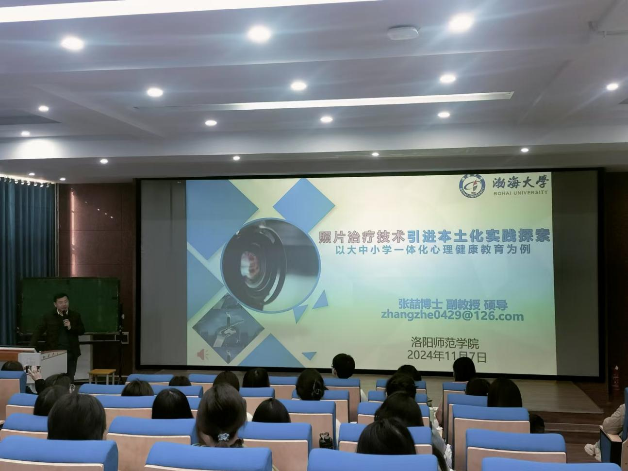 11月6日上午,应我院邀请,国内知名的照片治疗技术专家、渤海大学副教授张喆博士在A6-116教室为应用心理学全体本科生做了“照片治疗技术引进本土化探索”的专题讲座。