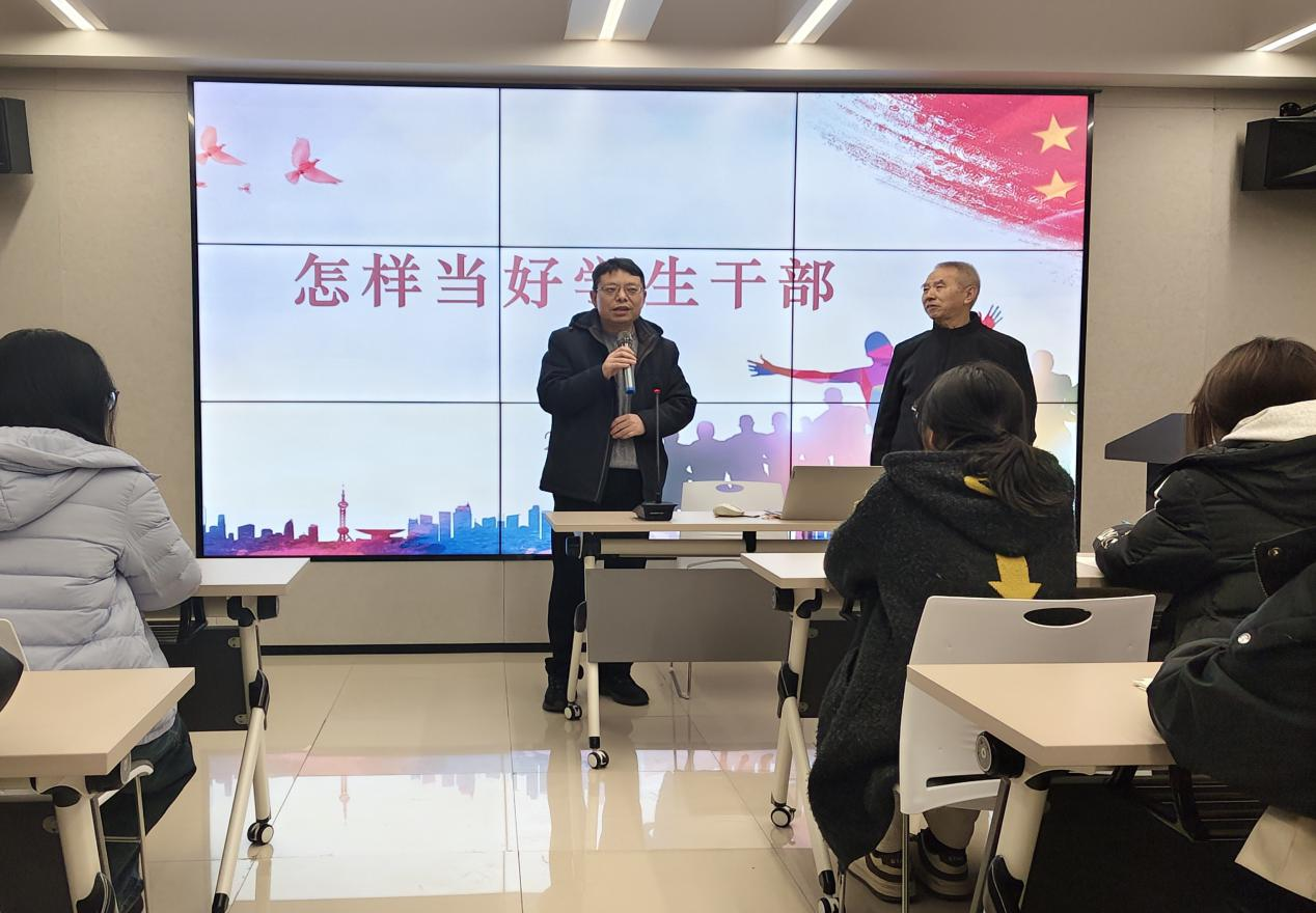 张辛卯以“如何当好一个学生干部”为题,针对学生干部的角色定位、重要性以及履职尽责路径进行了深入浅出的指导。他指出,学生干部不仅是一种学生身份的体现,更是一种责任和使命,一个优秀的学生干部应当思想素质好、学习态度好、身心锻炼好。他结合《学生会、研究生会干部自律公约》,向同学们提出四点建议:一是牢固树立群众观念,摆正自身位置、扎实服务同学;二是增强学生干部团队凝聚力,在团结互助中形成工作合力和整体优势;三是以身作则,严于律己,勇于实践锻炼,在知行合一中锤炼能力学识;四是树立改革创新意识,结合本院、本班、本宿舍实际,积极借鉴先进经验和成功做法,努力成长为一名胸怀理想、心系同学、品学兼优的学生干部。