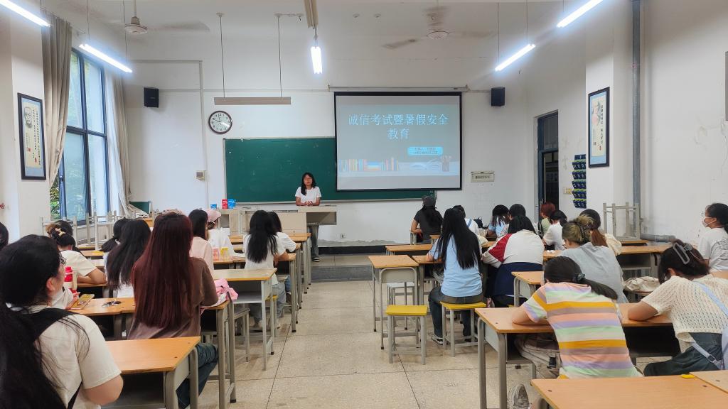 为加强学院考风建设,维护考试公平性,同时切实增强学生的安全意识和自我保护能力,我院于6月中下旬组织全院27个班级,分类分时召开2023-2024学年第二学期考前动员会暨假期安全教育主题班会。