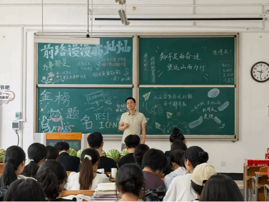 晋银峰与同学们亲切交流,详细了解大家的复习进展、学习计划以及目前面临的困难,鼓励同学们要坚定信心、稳住节奏,注重查漏补缺,科学安排时间,合理调节心态,以最好的状态迎接挑战。陈磊对同学们不畏酷暑、坚持复习的拼搏精神给予高度肯定,并叮嘱大家在专注学业的同时,注意自身安全,做到劳逸结合,养成良好的学习习惯,扎实走好备考每一步。对于同学们提出的复习方法、答题技巧和时间管理等方面的问题,老师们给予细致指导。