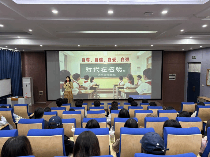 本次讲座以“时代在召唤”为题展开,赵婉婉以亲身经历为引,讲述了自己重塑自信、感悟职场以及成就自我的心路历程。她聚焦同学们普遍关注的职业出路问题,系统梳理了心理学专业六大职业方向,对比分析了心理咨询与治疗、教育与高校系统、科研与学术方向等热门职业方向的发展前景和实现路径。她指出,就业不仅是谋生选择,更是探索自我的过程。同学们需要科学认知自我,明确职业目标,在实践探索中取长补短、砥砺前行,不断锤炼内心力量,在实现个人价值过程中实现社会价值。