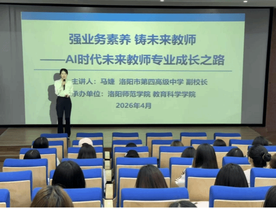 为深入落实数字化赋能教师发展行动要求,助力师范生适应AI时代教育范式变革,明确专业成长方向,提升核心业务素养,我院特邀洛阳市第四高级中学副校长马婕做客“名师进课堂”,为师生们带来“AI时代未来教师专业发展”的专题讲座。