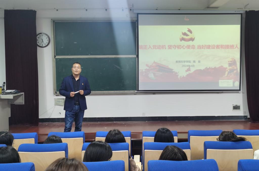 4月7日下午,我院2024年上半年入党积极分子培训班在A6-116教室开班。学院党委书记陈磊以《端正入党动机,坚守初心使命,当好建设者和接班人》为题讲授首场党课。