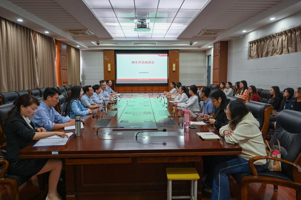 报告会后,郭海明与师生进行了座谈,郭海明详细询问了2022级小教全科一班的学习、生活等情况,与师生代表就大家关注的教师队伍、专业建设、学业发展、实习就业等问题进行了交流。郭海明勉励广大师生要深入学习全会提出的一系列新观点、新论断、新目标、新任务,紧扣新时代新征程高等教育使命,认真落实立德树人根本任务,为推进中国式现代化建设河南实践、洛师实践作出新的更大贡献!