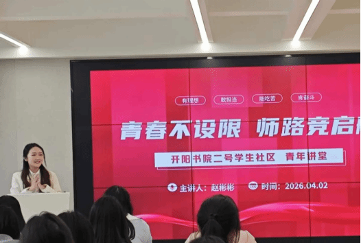为助力学子明晰教师职业发展路径、掌握教学竞赛核心方法、科学规划师范成长道路,4月2日,开阳书院二号学生社区主办的“青春不设限,师路竞启航”青年讲堂顺利开展。本次活动邀请田家炳教学比赛全国一等奖获得者赵彬彬同学主讲,书院2024级、2025级生物科学学科教师班学生积极参与。