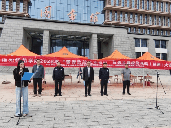 4月9日,“青春彩绘 无诈校园”反诈主题涂鸦大赛在图书馆太学广场举行。活动由洛阳市公安局城乡一体化示范区分局、校党委保卫部(保卫处)联合主办,书院社区承办。副校长程金龙、区公安分局副局长赵建魁、党委保卫部(保卫处)处长朱胜利、书院社区党委书记陈冰出席活动。
