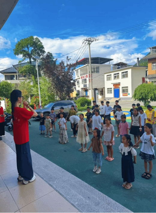 在第一天与小朋友们初次相识时,教给了他们一首名为《小美满》的歌曲以及豫剧经典选段。谈及感悟他们说“首先,我们通过一个富有韵律感的手势操作作为切入点,逐步引导孩子们进入状态,让他们在轻松愉快的氛围中熟悉音乐的欢快和轻松节奏。随后,采用逐句教学的方式,耐心地将歌词一句一句地传授给他们。令人欣慰的是,孩子们都展现出了极高的参与热情,他们愿意主动开口跟唱,并且积极回应教学指令,整个学习过程充满了活力和互动。