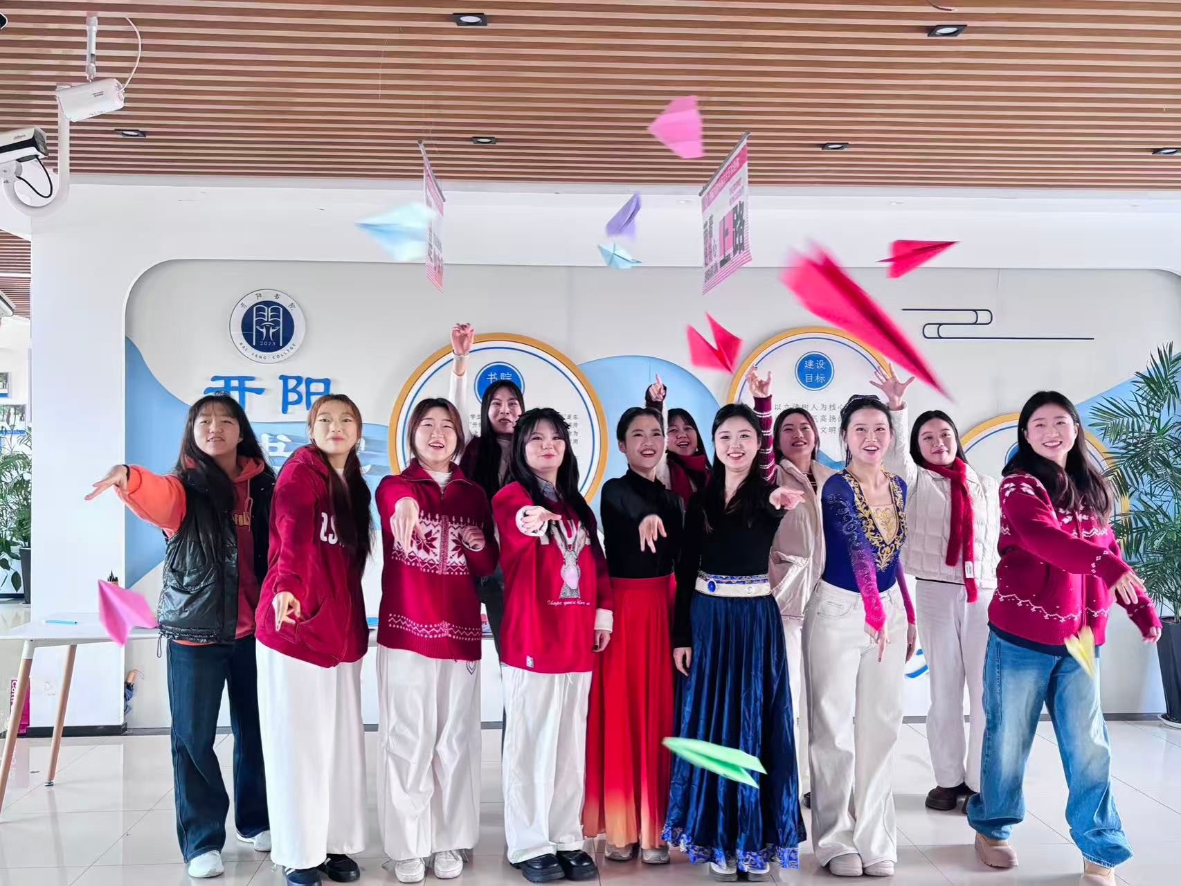 伴随着《相亲相爱》的旋律,来自不同民族、不同专业的师生们,整齐划一的动作、洋溢着朝气的笑容,展现出书院师生们团结一心、积极向上的精神风貌。舞蹈间隙,师生们共同放飞承载着心愿的纸飞机,一声声“新的一年我想……”的真挚祈愿,将现场的温馨氛围推向高潮,也让艺术疗愈的暖意浸润人心。