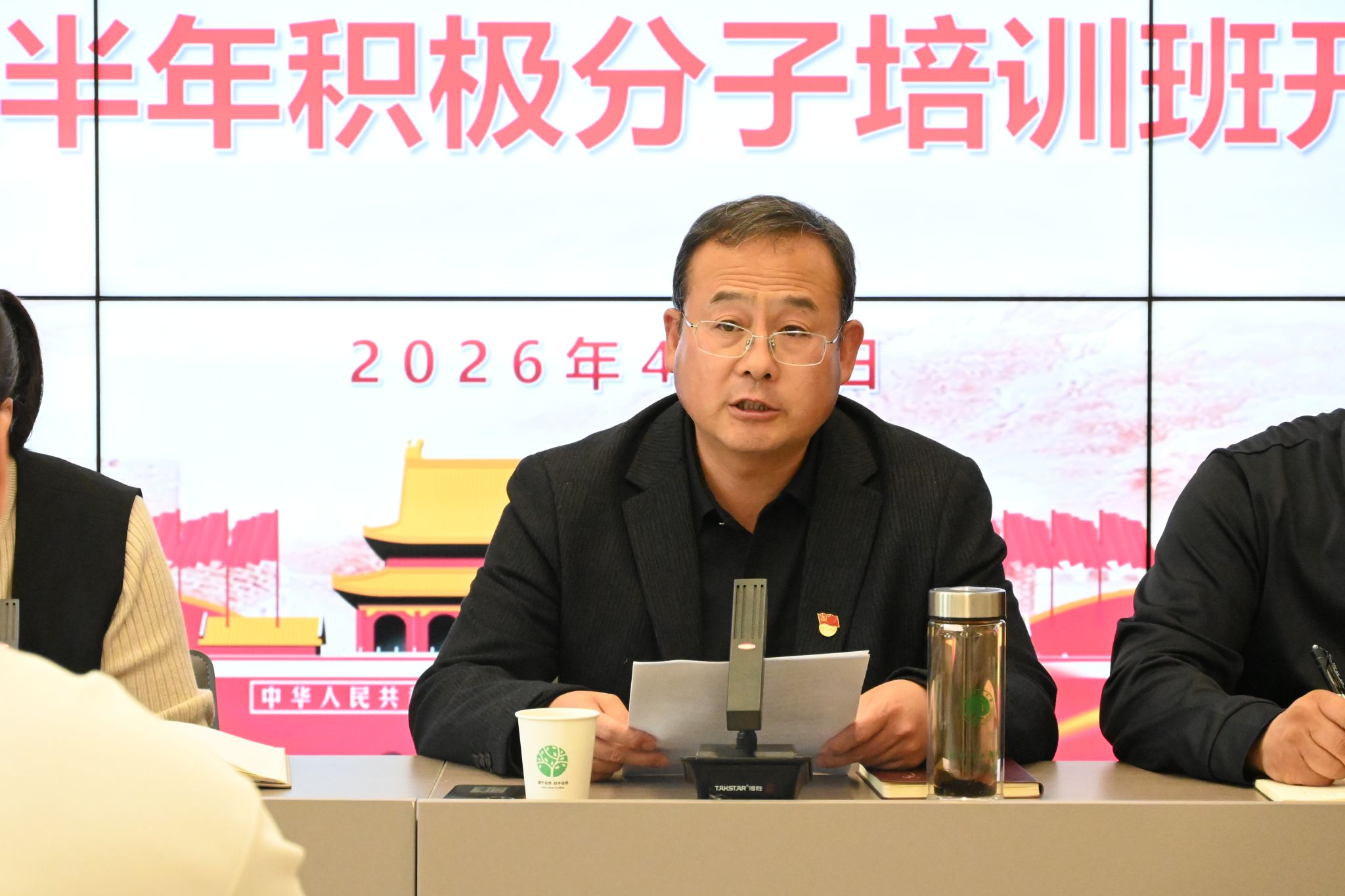 开班仪式在庄严的国歌声中拉开帷幕。陈立栋对全体入党积极分子提出了三点要求:一是要端正入党动机,主动加强理论学习,夯实思想根基;二是要明确努力方向,以更高标准严格要求自己,提升综合素养;三是要践行初心使命,发挥先锋模范作用,全心全意为同学服务。