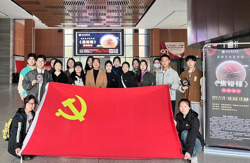 3月26日下午,河南省“高雅艺术进校园”活动——话剧《焦裕禄》在我院大剧院拉开帷幕。我院党委副书记池琳琳、辅导员黄艺欣以及学生党员代表参加此次主题党日活动。