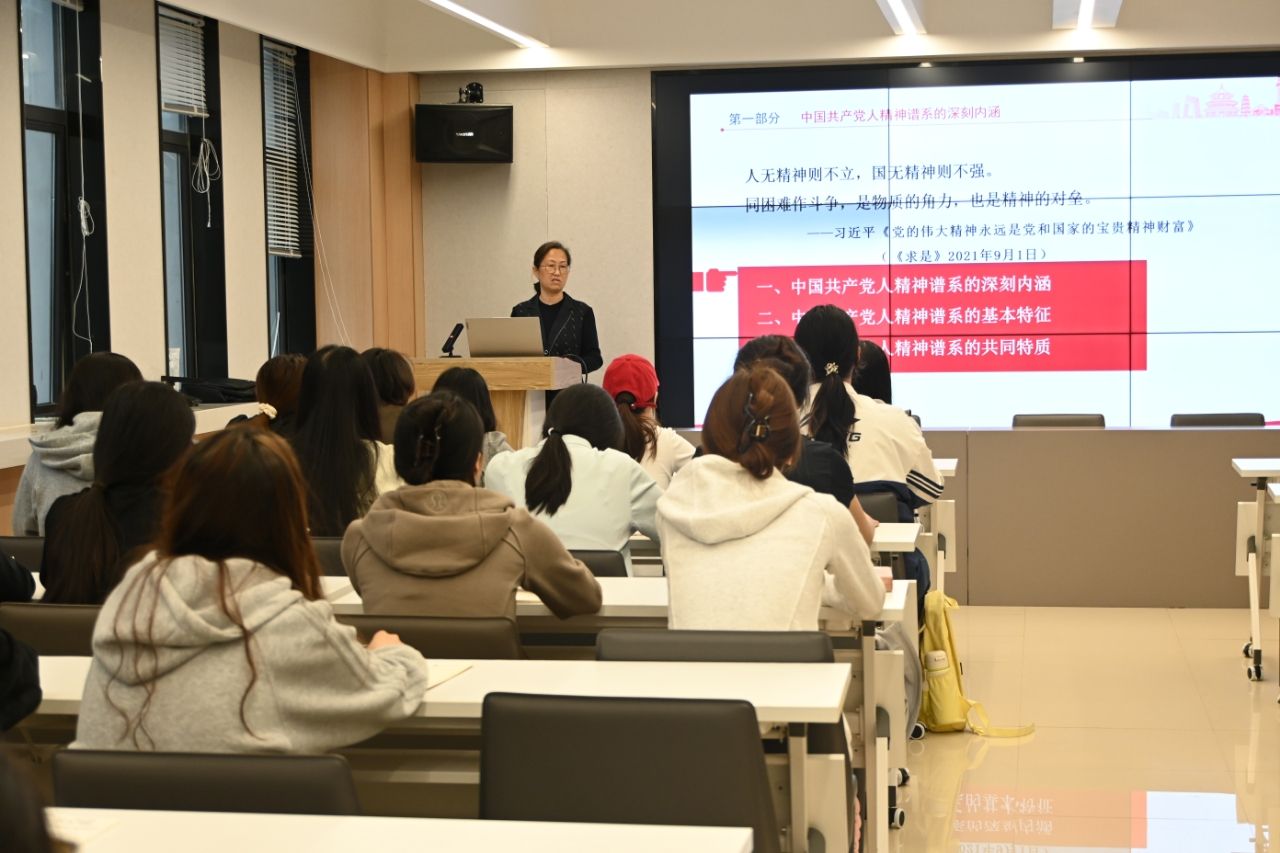黄淑婷以中国共产党人精神谱系为主线,深入解读了中国共产党人精神谱系的核心要义和价值意蕴,生动诠释了伟大建党精神是中国共产党人精神谱系的历史源头和高度凝练。她结合党的一大召开日期和出席人数的考证、第一部党章守护人张人亚、陈树湘烈士“断肠明志”、“半条被子”等红色故事,引导同学们以伟大建党精神为指引,在学思践悟中增知识长才干,不断汲取前行动力。