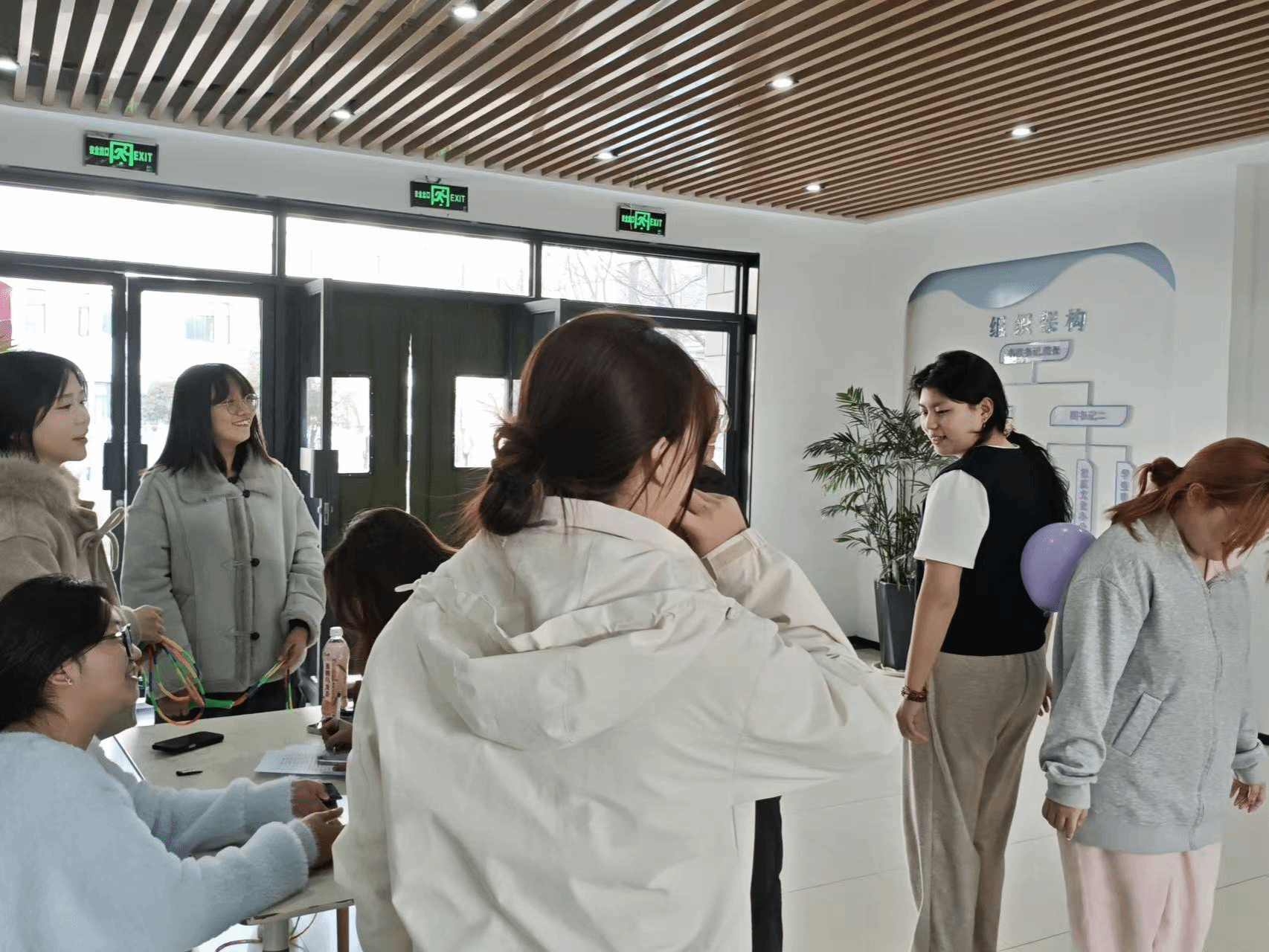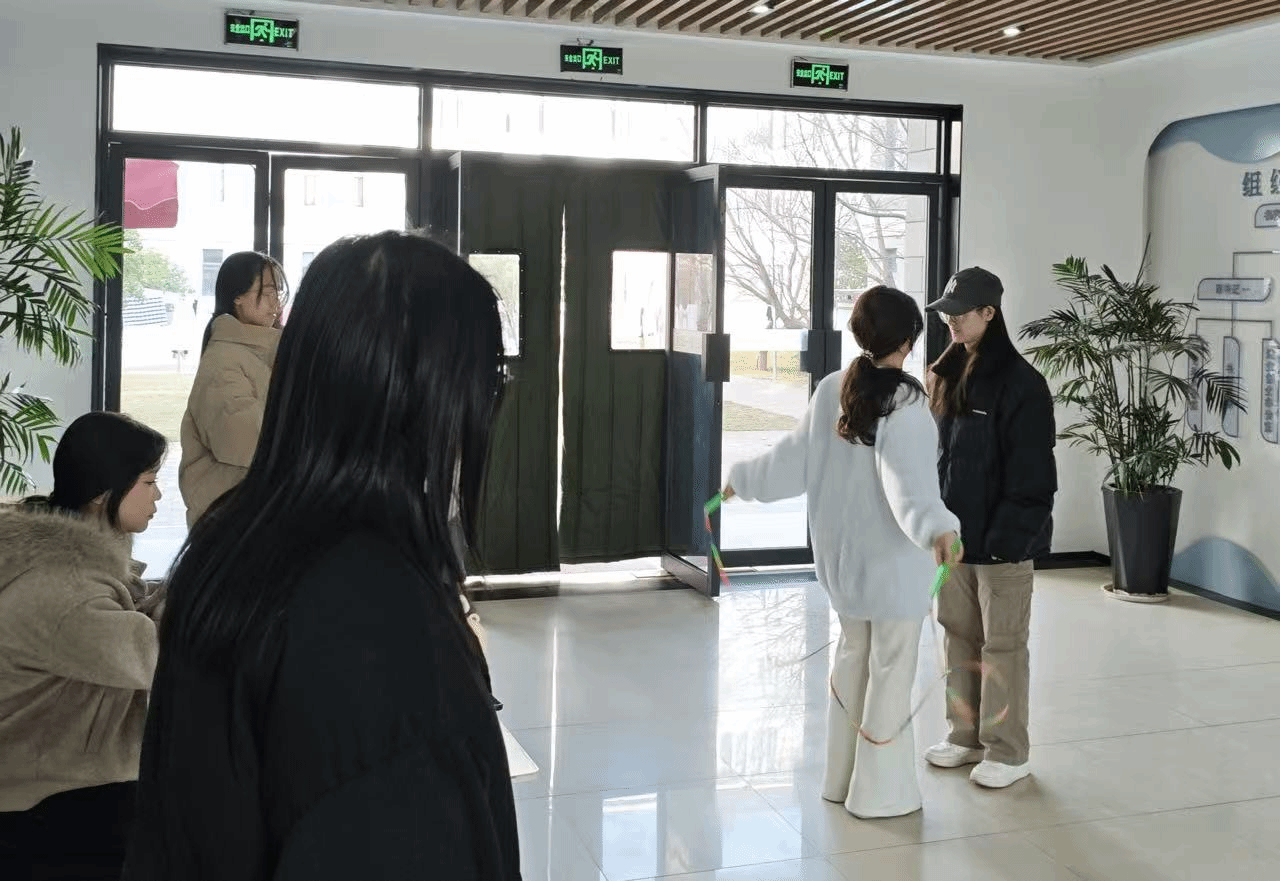 活动现场气氛活跃,暖意融融。各宿舍精心布置的文化海报贴满墙面,生动的手绘、温馨的合照,配上真挚的寄语,充分展现出同学们的巧思与情谊,也传递出青春特有的朝气与温度。趣味闯关环节更是精彩纷呈。“默契接力”背夹气球跑中,同学们紧密配合、互相鼓励,即使气球滑落也笑声不断,展现出融洽的团队氛围;“宿舍答题”环节聚焦安全与生活常识,大家踊跃参与、积极交流,在思考与抢答中深化对文明住宿的理解;“集体跳绳”项目则将气氛推向高潮,成员们步调一致、节奏分明,整齐的动作中尽显默契与凝聚力。