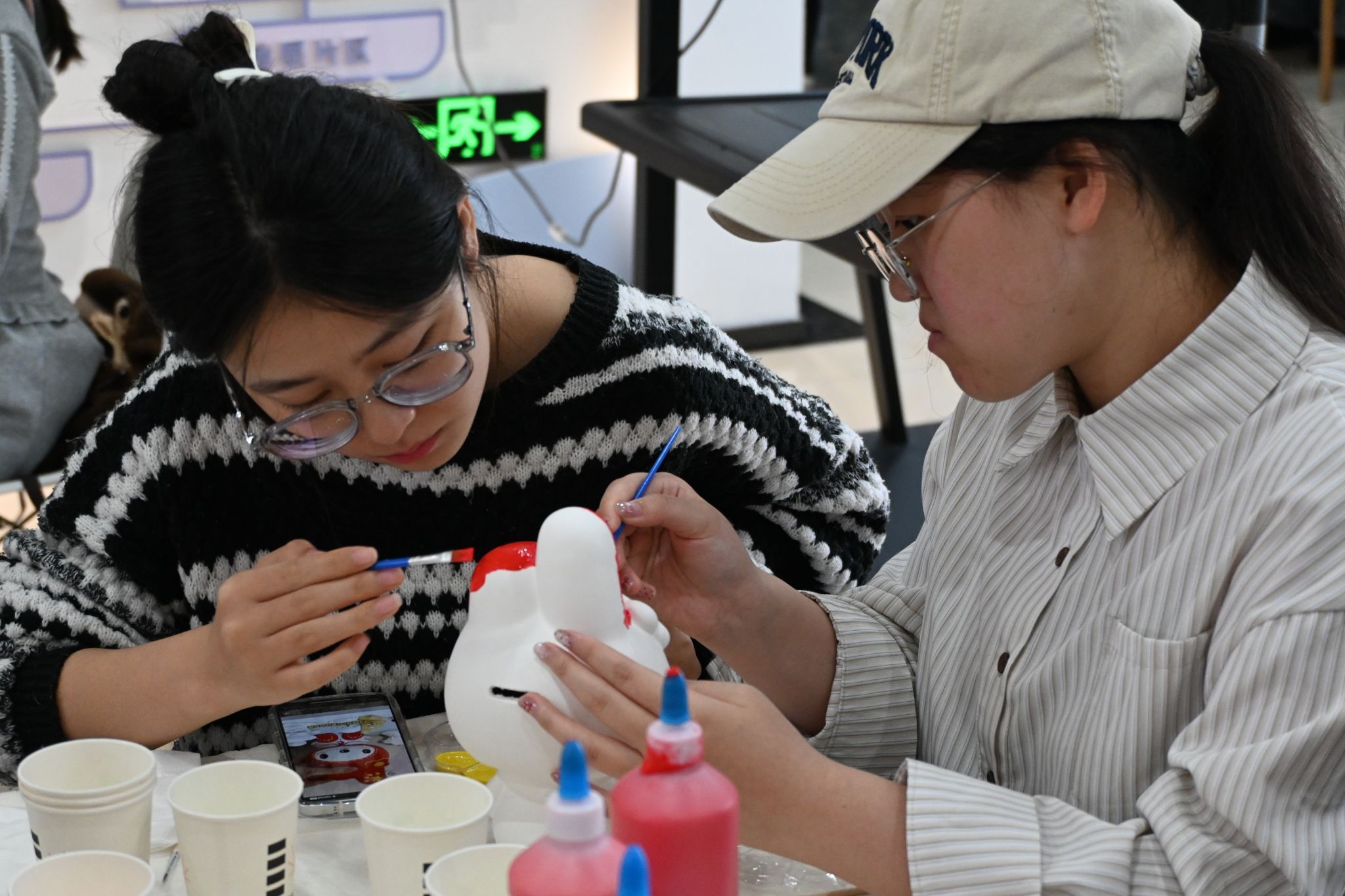 国庆主题石膏娃娃绘画活动“绘意颂国·共筑芳华”在社区温情开展。活动现场,同学们以画笔为媒,以色彩寄情,在纯白的石膏娃娃上精心描绘心中的中国红,大家专注调色、细心勾勒,从裙裾的渐变红色到创意图案的精心点缀,每一笔都凝聚着对祖国的深情祝福。在轻松而投入的氛围中,同学们不仅体验了创作的乐趣,更在交流与协作中加深了对国家象征与民族情感的理解,活动将美育与德育相结合,使抽象的爱国情怀化为可触可感的艺术表达,让国庆的仪式感融入青春的色彩与温度,真正实现了让爱国有形,让祝福入心。