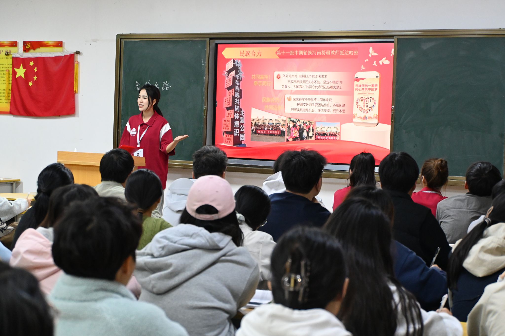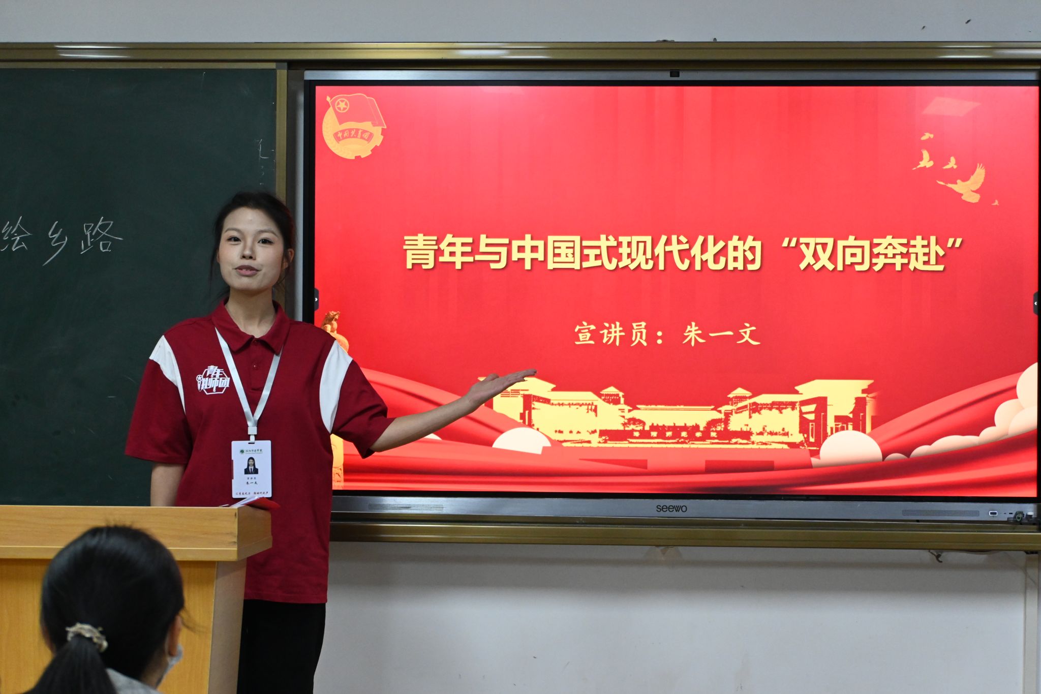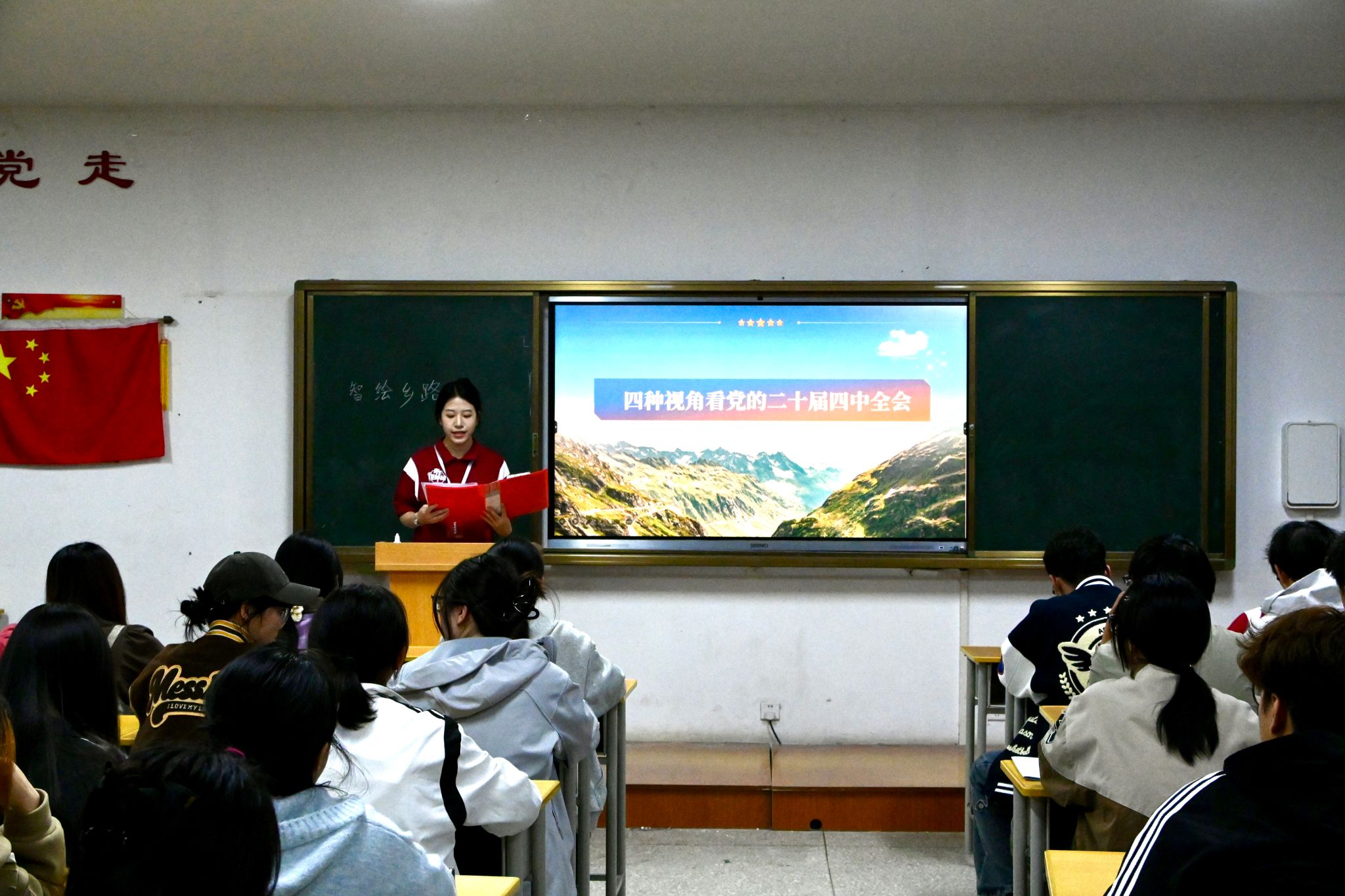 校青年讲师团成员依次登台,紧扣“强国复兴有我”核心主题,开展了有深度、有温度、有力量的宣讲。围绕不同时代的楷模事迹展开讲述。赵佳轩围绕党的二十届四中全会精神进行系统解读,用翔实的数据、鲜活的案例,生动展现了“十四五”时期我国发展取得的重大成就;李卓远、许思琪、朱一文、冯凯雯、张悦围绕不同时代的楷模事迹展开讲述,带领同学们回顾峥嵘岁月,引导大家从红色历史中汲取奋进力量,将个人成长与国家发展紧密结合。宣讲过程中,学生们认真聆听、积极思考,深厚的家国情怀与昂扬的奋斗精神在交流中传递。