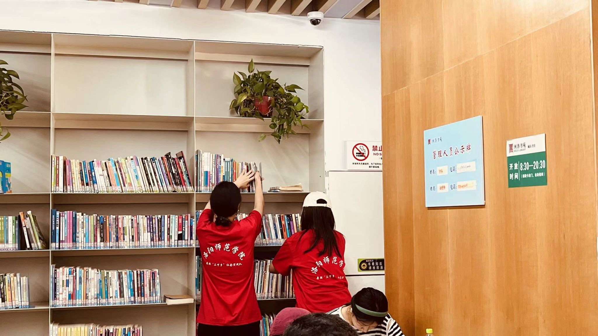 宣讲结束后,队员们迅速转换角色投入志愿服务。在图书管理环节,通过“信息核对-分类归架-路线优化”三步工作法,高效完成数百册图书的整理;在环境维护方面,采用分区清洁策略,对阅读区桌椅、书架及公共设施进行深度擦拭。队员们标准化的服务流程与专注的工作状态,获城市书房管理员点赞:“大学生志愿者的加入,让书房服务效率提升不少。”